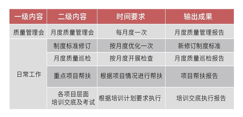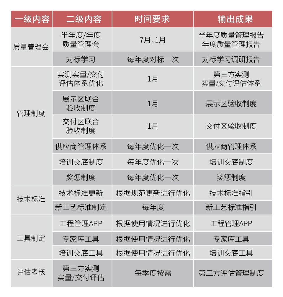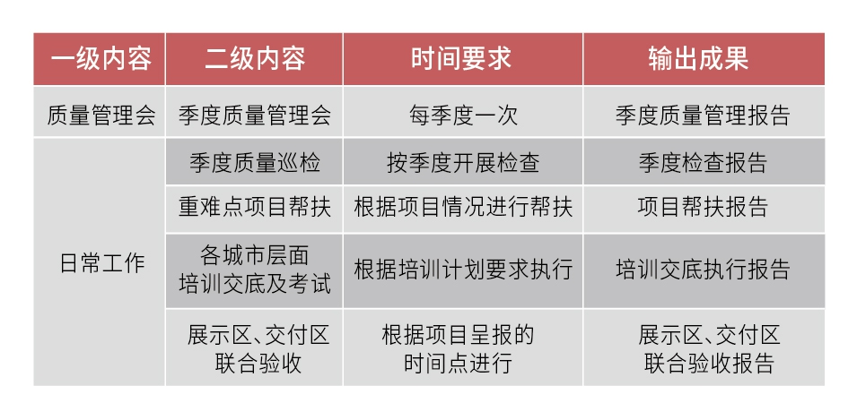 區(qū)域則重點(diǎn)抓季度工程巡檢、重點(diǎn)幫扶及過(guò)程控制等。